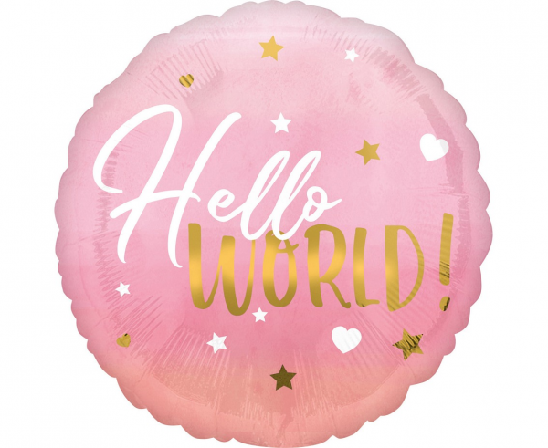 Balon folija -Hello world, roza barva