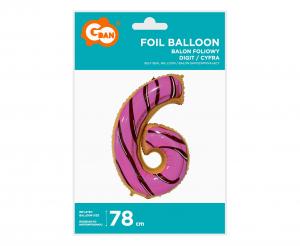 Balon folija - številka 6, piškotek / Cookie, 78cm