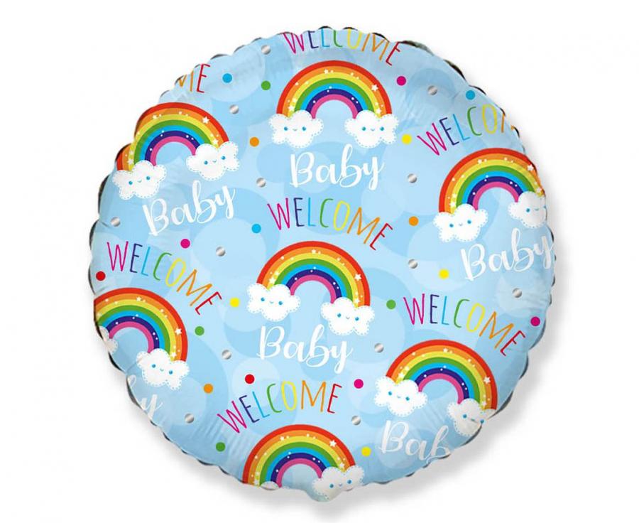 Folienballon Welcome Baby – Regenbogen Blau, 48 cm, Partydeko