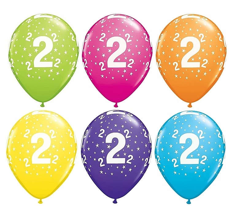 Baloni iz lateksa za 2 rojstni dan, 28cm, 6 balloons