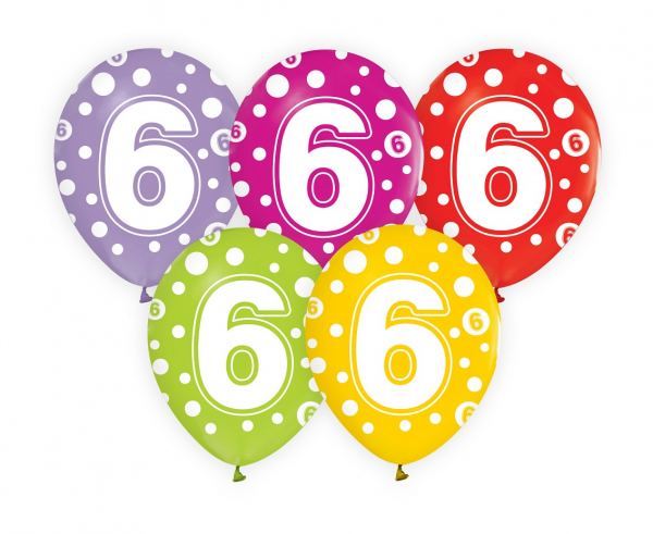 Latexballons 6. Geburtstag, 28 cm – 5 Stück Partydekoration