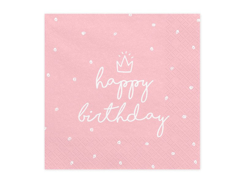 Papierservietten Happy Birthday – Rosa, 16,5x16,5 cm, 20 Stück