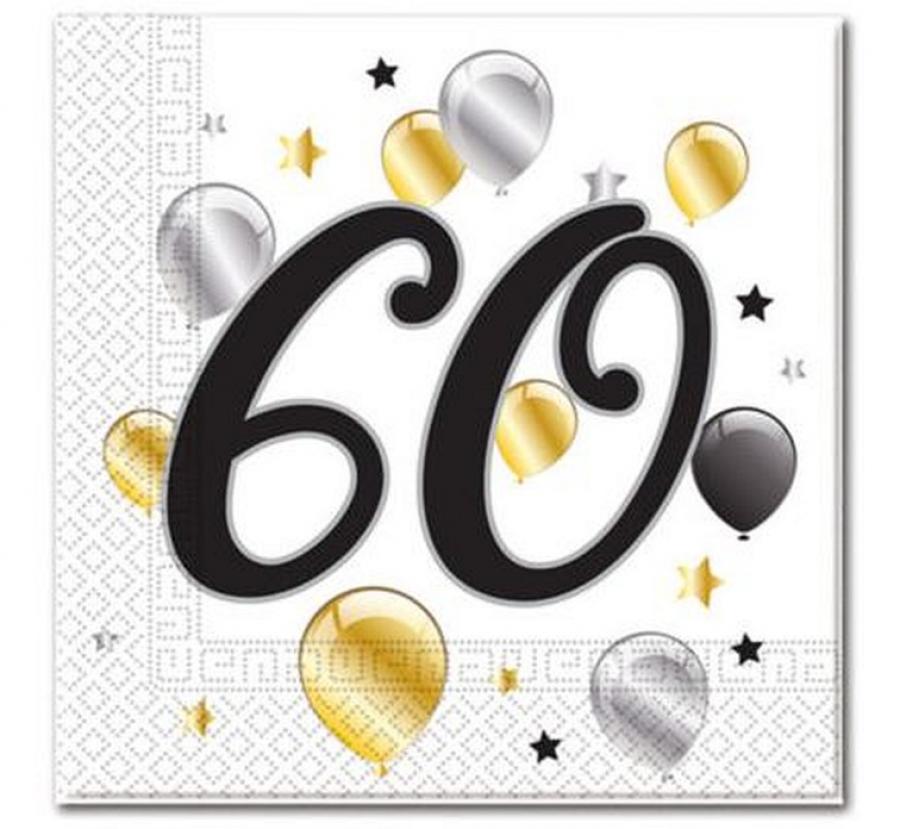 Papierservietten Zahl 60, 16,5x16,5 cm, 20 Stück, Party
