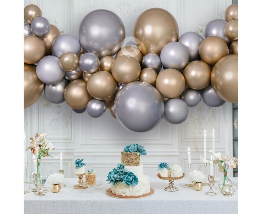 Ballongirlande Set Gold Silber – 65 Luftballons für Partydeko
