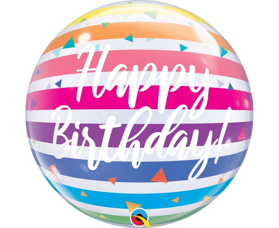 Bubble-Ballon „Happy Birthday“ – Regenbogenstreifen, 56 cm