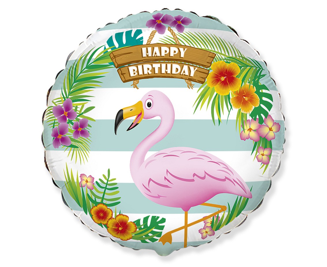 Folienballon Happy Birthday – Flamingo, 45 cm, Partydeko