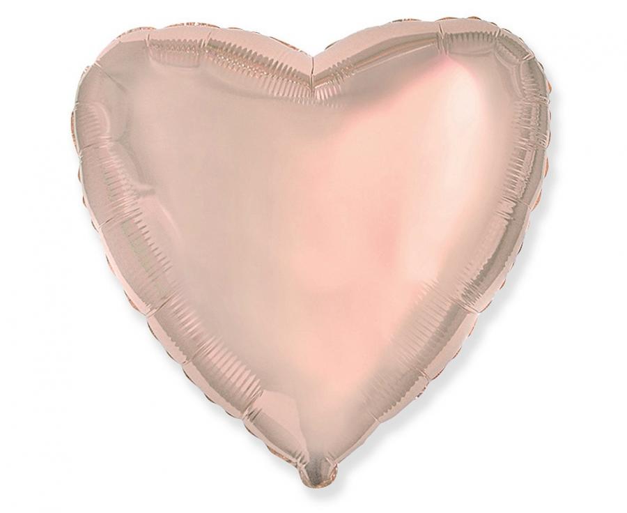 Roségoldener Herz-Folienballon, 46x48 cm, von Flexmetal. Perfekt für Partys, Hochzeiten oder romantische Anlässe. Wird ungefüllt geliefert, befüllbar mit Luft oder Helium.
