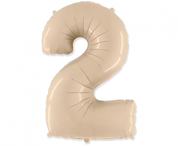 Folienballon Zahl 2, creme Satin, 66 cm, Geburtstagsdeko