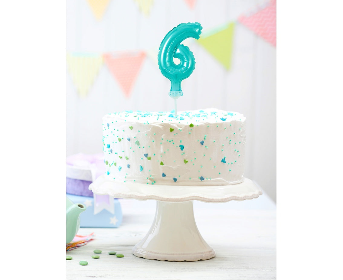 Folienballon Zahl 6 auf Stab, blau, 13 cm, Geburtstagsdeko