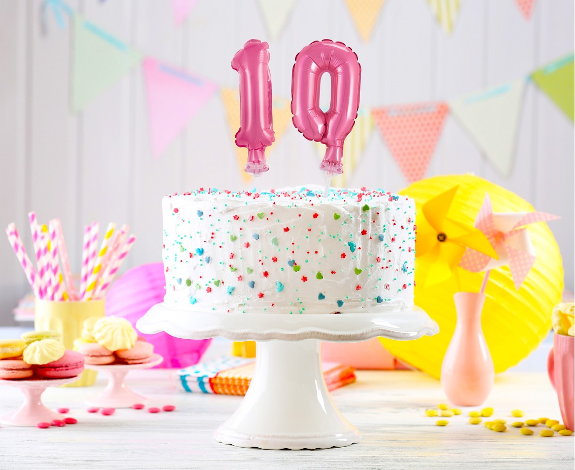 Geburtstags-Ballon Zahl 0 rosa 13 cm auf Stab für Party