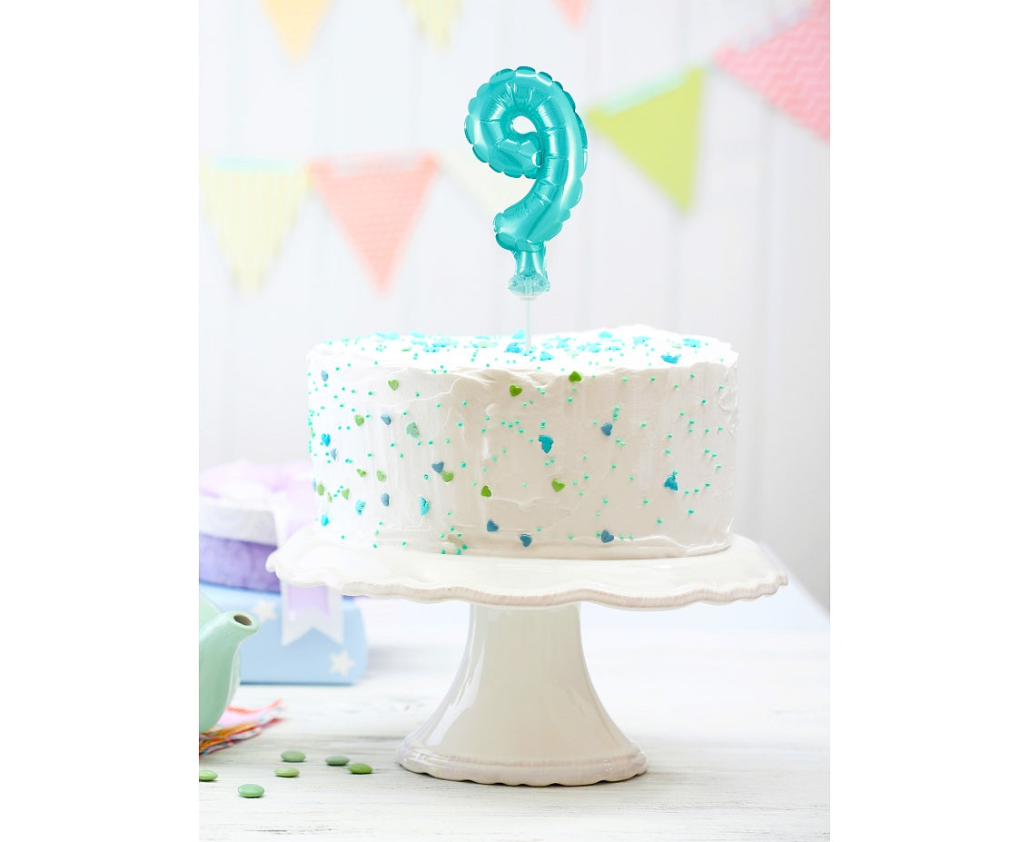 Blauer Ballon auf Stab in Form der Zahl 9, 13 cm, mit Luft befüllbar. Perfekt für Geburtstagsfeiern, kleine Partys & dekorative Highlights – bringt Spaß & Freude.