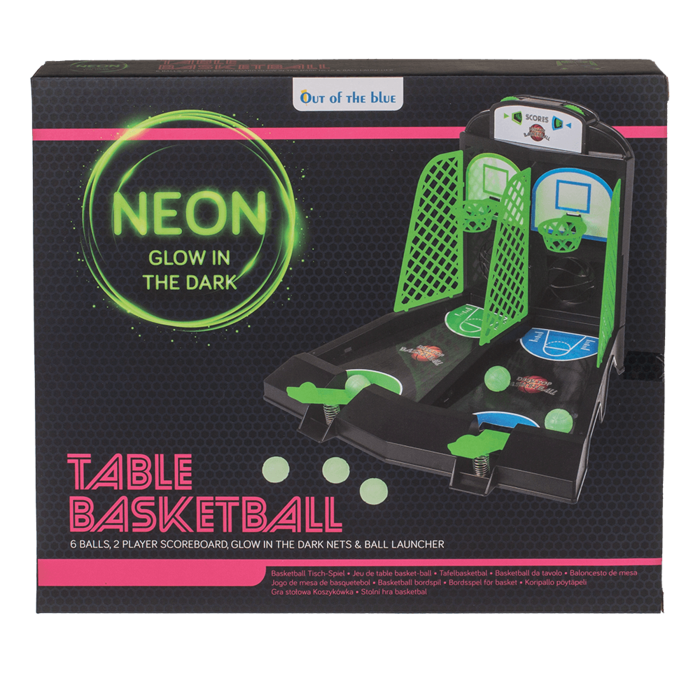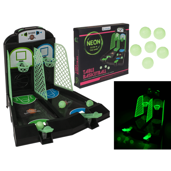 Spaßiges Tischbasketballspiel, 27,5 cm, mit 13 Teilen. Für 1–2 Spieler geeignet. Leuchtet im Dunkeln und sorgt für spannende Spiele, auch bei kompletter Dunkelheit.