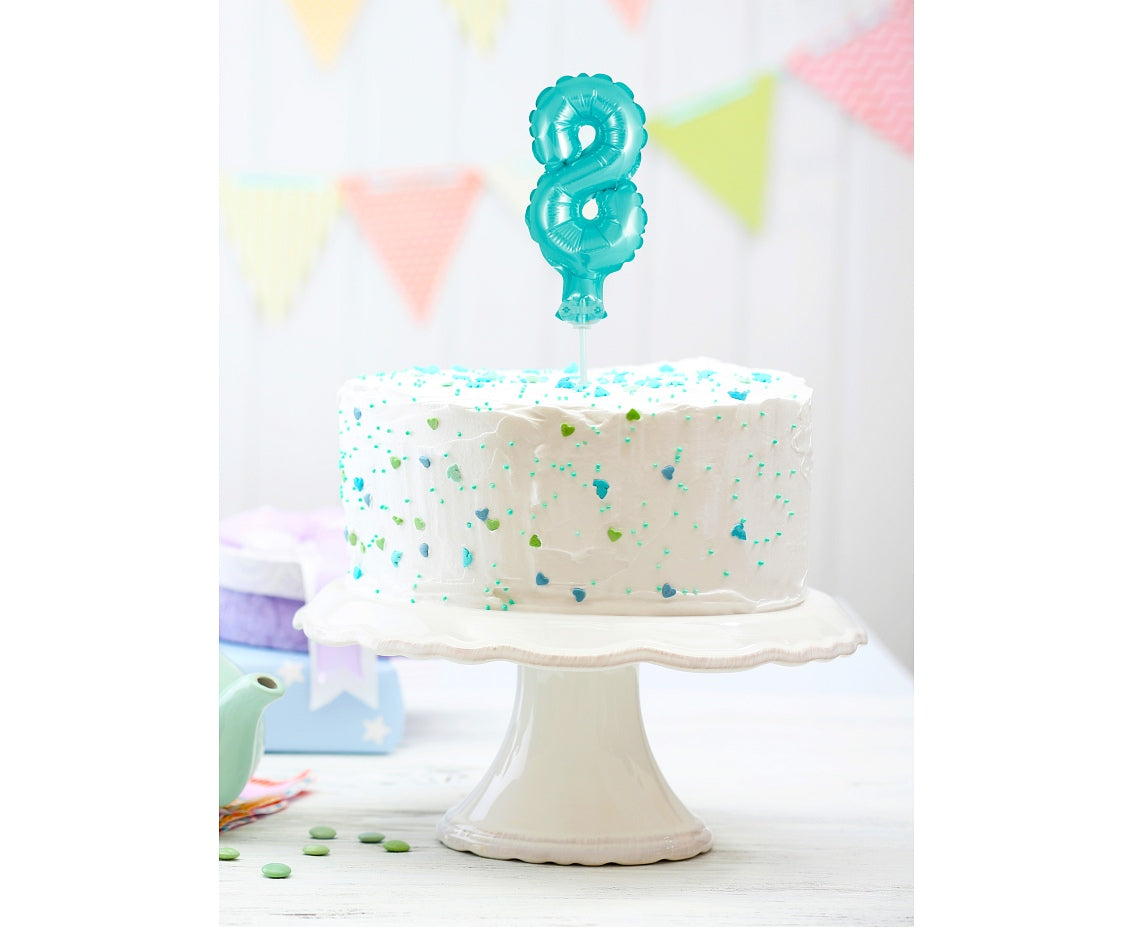 Mini Ballon Zahl 8 Blau – 13 cm, Geburtstagsdeko auf Stab
