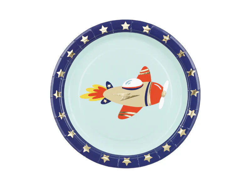 Pappteller Flugzeug – 18 cm, 6 Stück Kinderparty Deko Mix
