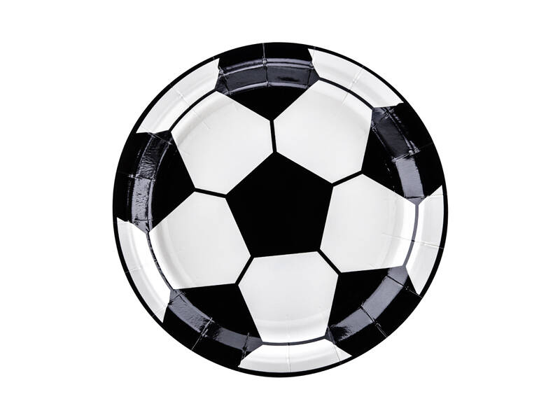 Schwarze-weiße Pappteller „Fußball“, 18 cm, 6 Stück. Perfekt für Kindergeburtstage, Fußball-Mottopartys oder sportliche Feierlichkeiten. Praktisches Einweggeschirr aus Papier.