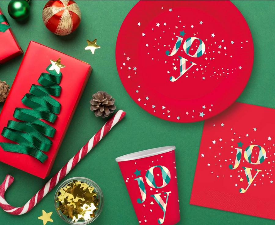 Pappteller Joy – Rot, 18 cm, 6 Stück Weihnachtsdeko