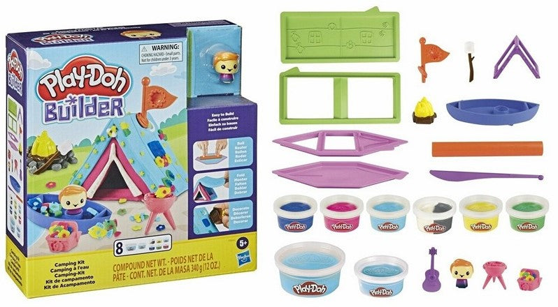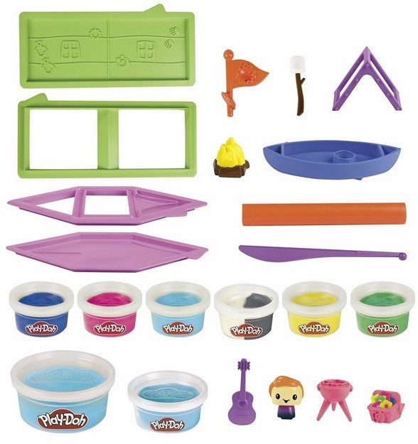 23-teiliges Play-Doh Set Camping mit 8 Knetdosen in verschiedenen Farben. Kreatives Spielzeug für Kinder ab 5 Jahren – Zelte, Kanu, Lagerfeuer und mehr gestalten.