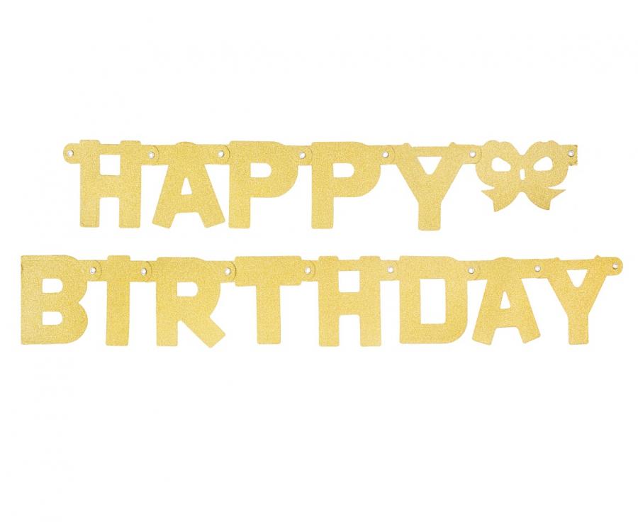 Viseč napis z bleščicami Happy Birthday, zlata barva, 11 x 160cm