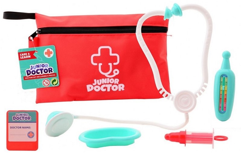 Naj se vaš otrok vživi v poklic zdravnika. Igralni set vsebuje 6 kosov različnih igrač, ki jih za svoje delo potrebujejo zdravniki. Celoten set pa vsebuje tudi priročno torbico, kamor se lahko pospravi.